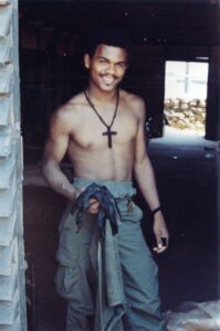 “That’s Ed Torres. He walked point. Once, while we were taking a break on patrol his shotgun went off and nearly killed me.”